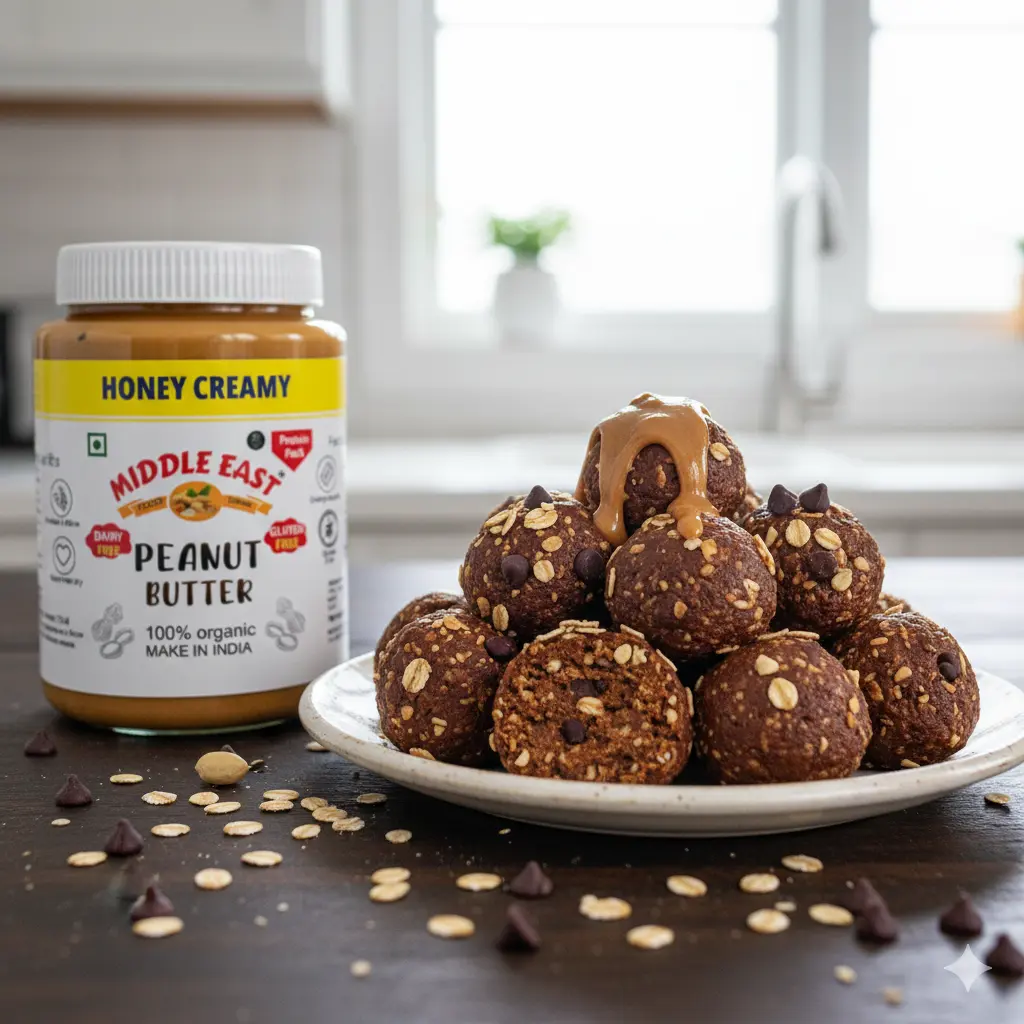 Ingredients: 1 cup oats ½ cup Middle East Honey Creamy Peanut Butter ¼ cup honey or jaggery syrup 2 tbsp flaxseed or chia seeds